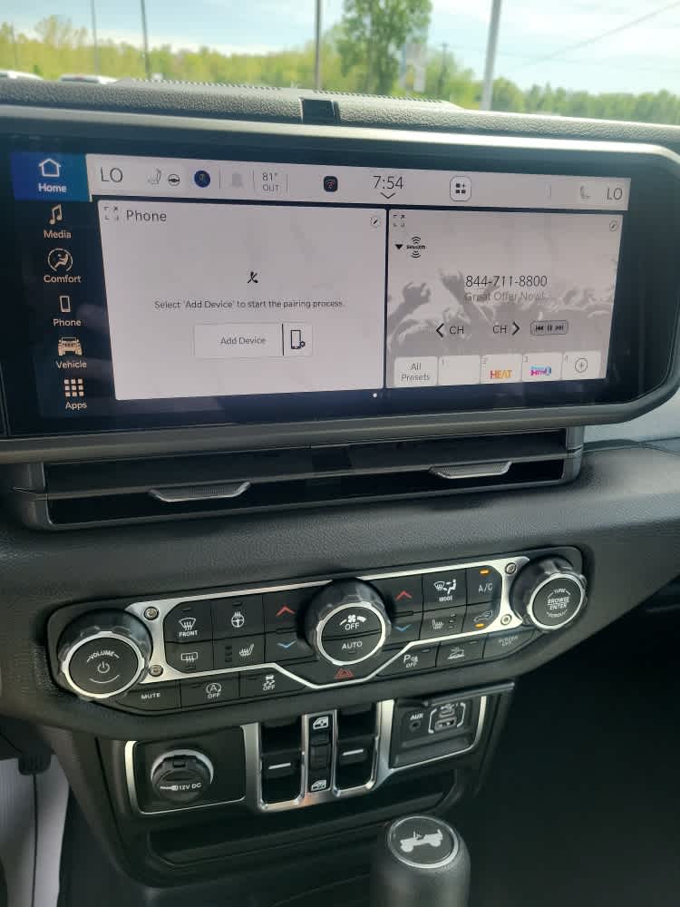 Engine: 2.0L I4 DOHC DI Turbo w/ESS, Transmission: 8-Speed Automatic (850RE), Advanced Brake Assist, Power Heated Mirrors, Enhanced Adaptive Cruise Control, Automatic Headlamps, Corning Gorilla Glass, Premium Wrapped Steering Wheel, Security Alarm, Sun Visors w/Illuminated Vanity Mirrors, Full Speed Forward Collision Warning Plus, Adaptive Cruise Control w/Stop, Anti-Lock 4-Wheel Disc Brakes, Integrated Radar Camera Module (IRCM), Dana M200 Rear Axle, Emergency/Assistance Call, 2-Door Passive Entry, Front Door Locks, Remote Start System, Cluster 7.0 TFT Color Display, Universal Garage Door Opener, Heated Front Seats, Air Conditioning w/Auto Temp Control, Heated Steering Wheel, Air Filtering, Freedom Panel Storage Bag, Rear Window Defroster, Rear Window Wiper/Washer, Front LED Fog Lamps, LED Premium Reflector Headlamps, ParkSense Rear Park Assist System, Auto High Beam Headlamp Control, Blind Spot & Cross Path Detection, LED Taillamps, Injection Molded Black Rear Bumper, WHEELS: 17 X 7.5 MACHINED W/BLACK POCKETS, ENGINE: 2.0L I4 DOHC DI TURBO W/ESS. MP3 Player, Privacy Glass, Child Safety Locks, Steering Wheel Controls, Rollover Protection System.