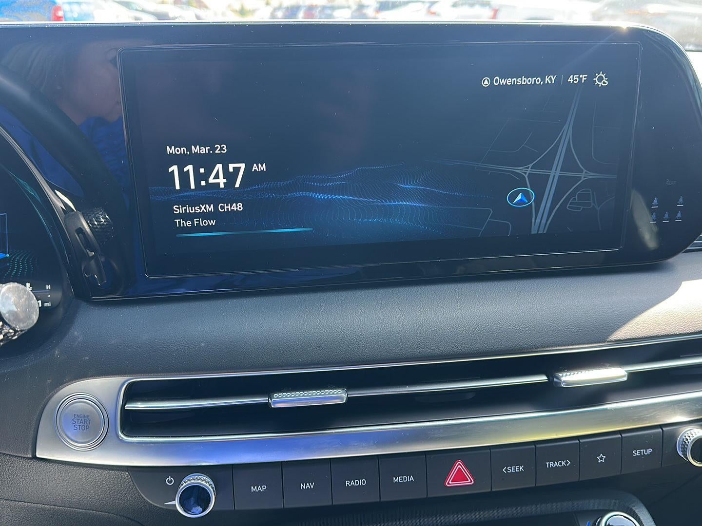 - Radio: AM/FM/MP3 Premium Audio System -inc: 630-Watts, Harman Kardon audio system w/12-speakers, Quantum Logic Surround, Clari-Fi, 12.3" color touchscreen display, onboard navigation w/traffic flow including incident data via HD Radio (HERE), Over-the-Air (OTA) map updates, SiriusXM, Android Auto and Apple CarPlay, USB, dynamic voice recognition, rear seat quiet mode, passenger talk (in-car intercom), Bluetooth® hands-free connectivity w/multiple device connection and Bluelink Connected Car System