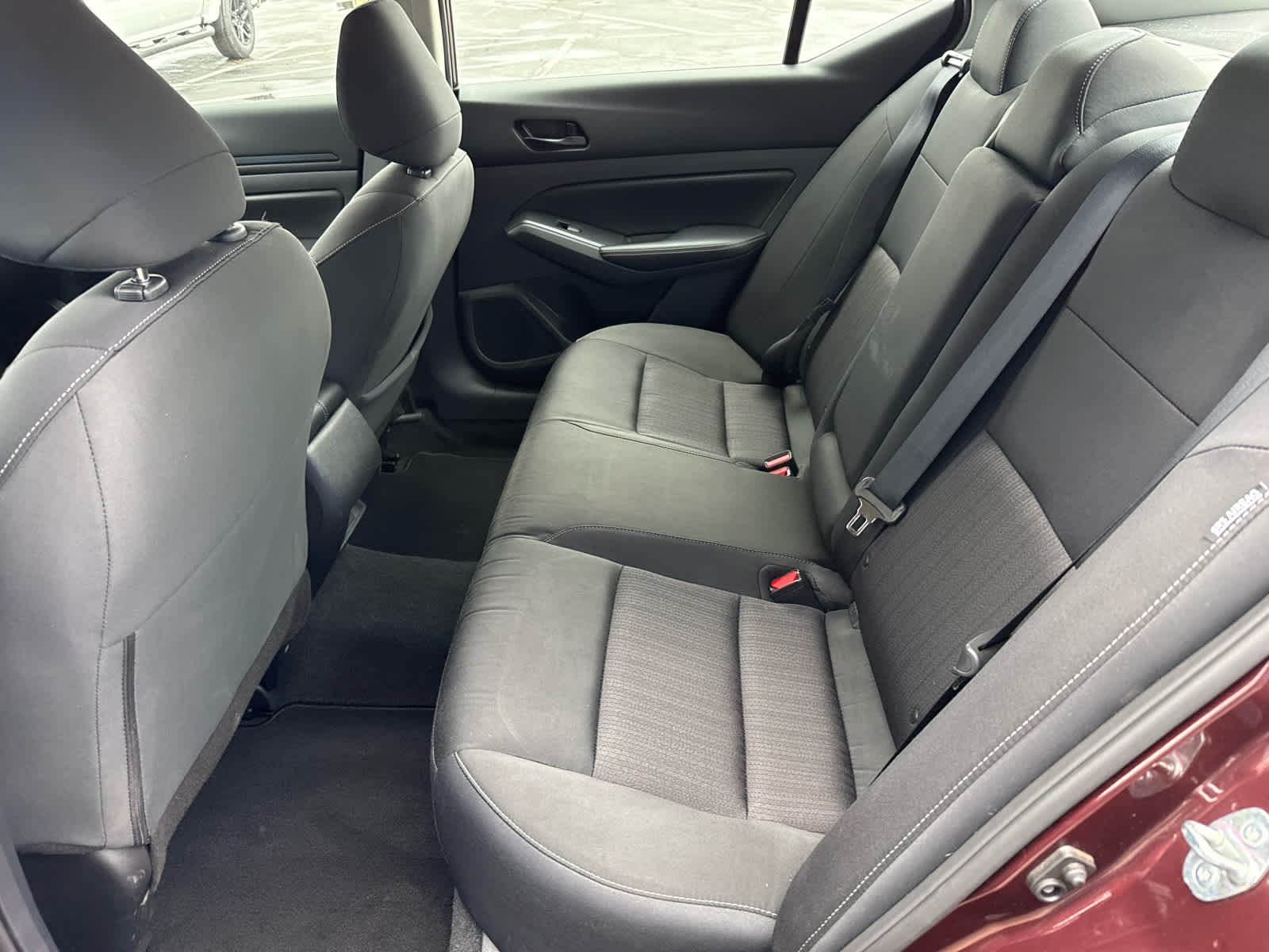 Back-Up Camera, Bluetooth®, Aluminum Wheels, Smart Device Integration Nissan SV with Garnet Pearl Metallic exterior and Charcoal interior features a 4 Cylinder Engine with 188 HP at 6000 RPM*. MP3 Player, Remote Trunk Release, Keyless Entry, Steering Wheel Controls, Child Safety Locks.
